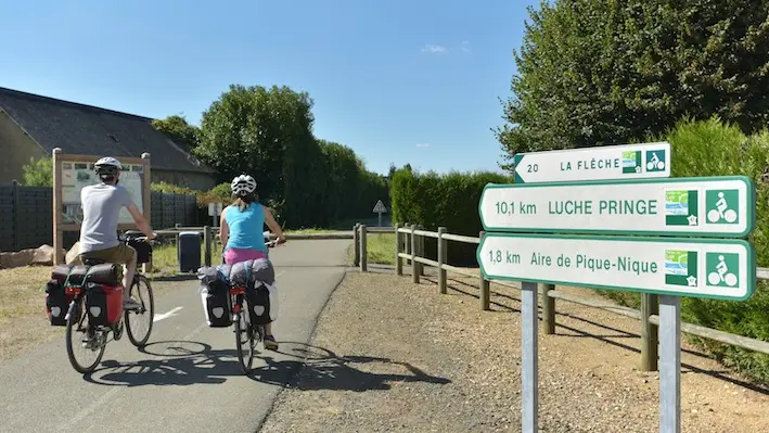 Verlaat de stad La Flèche en volg de smalle paden langs de Loir om Luché Pringé te bereiken. Leun tegen de helling en ontdek de privékastelen en mooie residenties die de vallei lijken te bewonderen. Halverwege de route kun je picknicken aan de oever van de Loir in dit charmante dorpje. Op de terugweg kun je genieten van de schaduw van de pijnbomen op de groene route tussen Luché Pringé en de stad La Flèche! Bijna 15 kilometer aan autovrije paden voor een frisse neus!